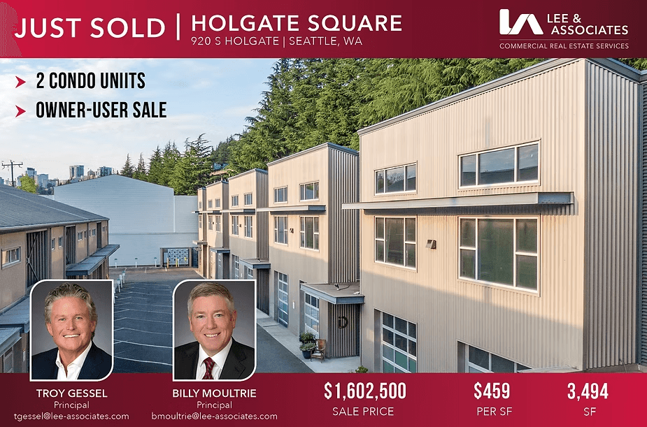 As the exclusive representative on this transaction, Troy Gessel and the Lee & Associates team helped the seller identify a qualified owner-user buyer—navigating sale structuring and closing timelines in a highly active industrial-flex submarket. The team’s deep familiarity with Holgate Square and broader SODO market dynamics played a key role in presenting the property’s long-term value and utility.