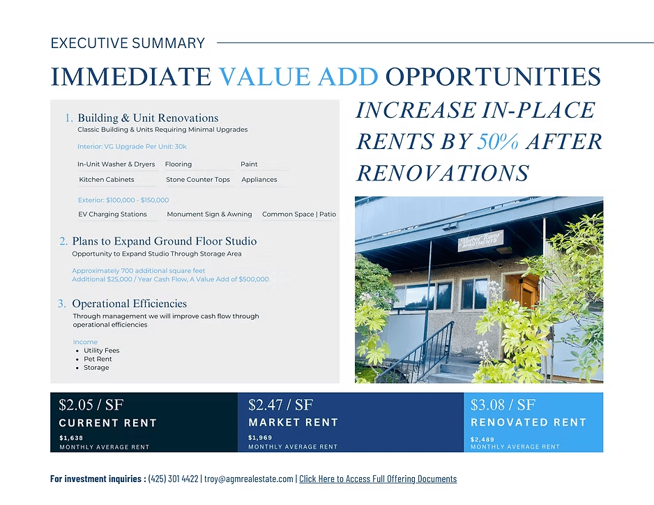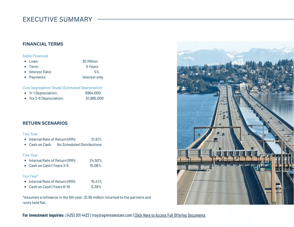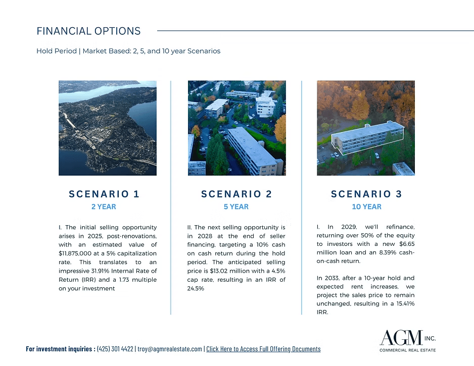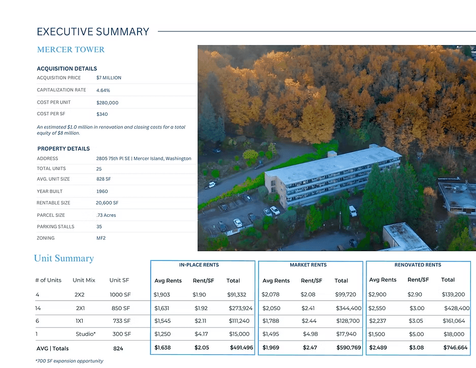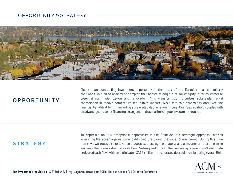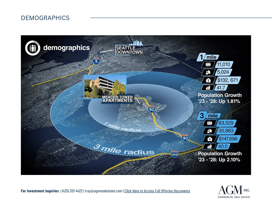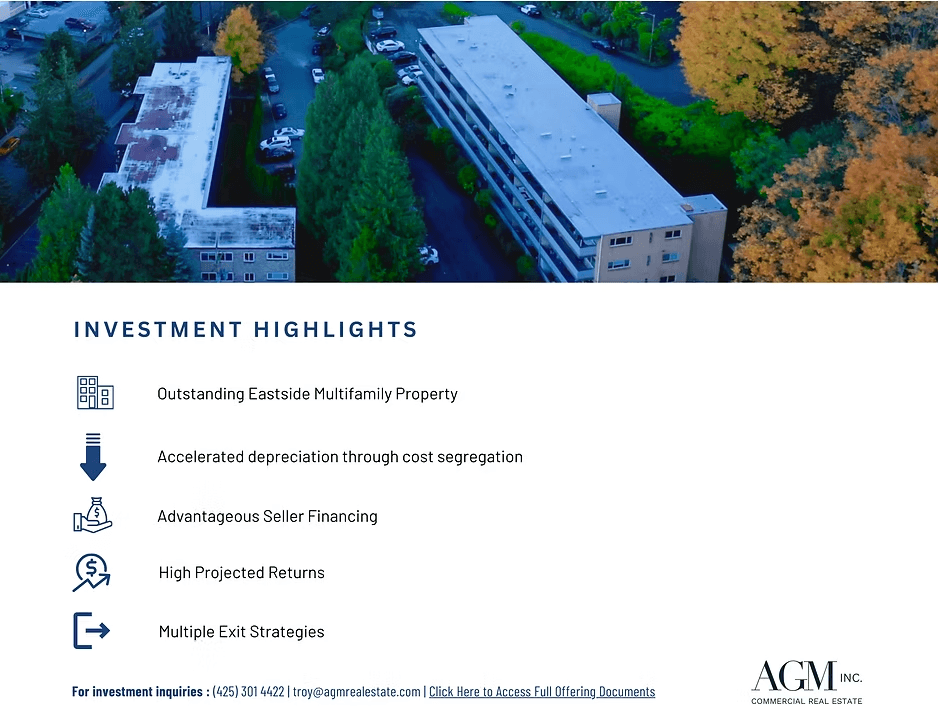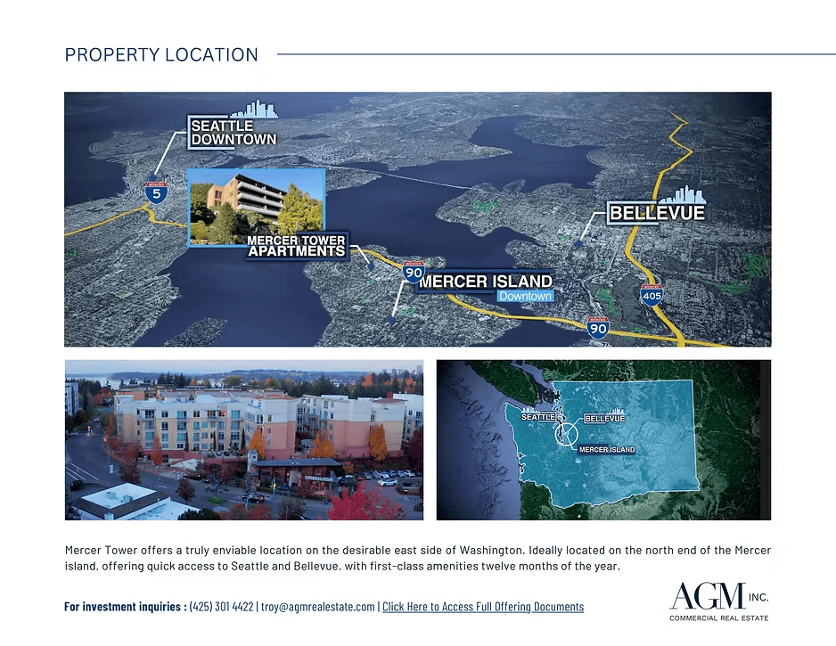 AGM Inc is sponsoring this latest offering to acquire Mercer Tower Apartments on Mercer Island, Washington.